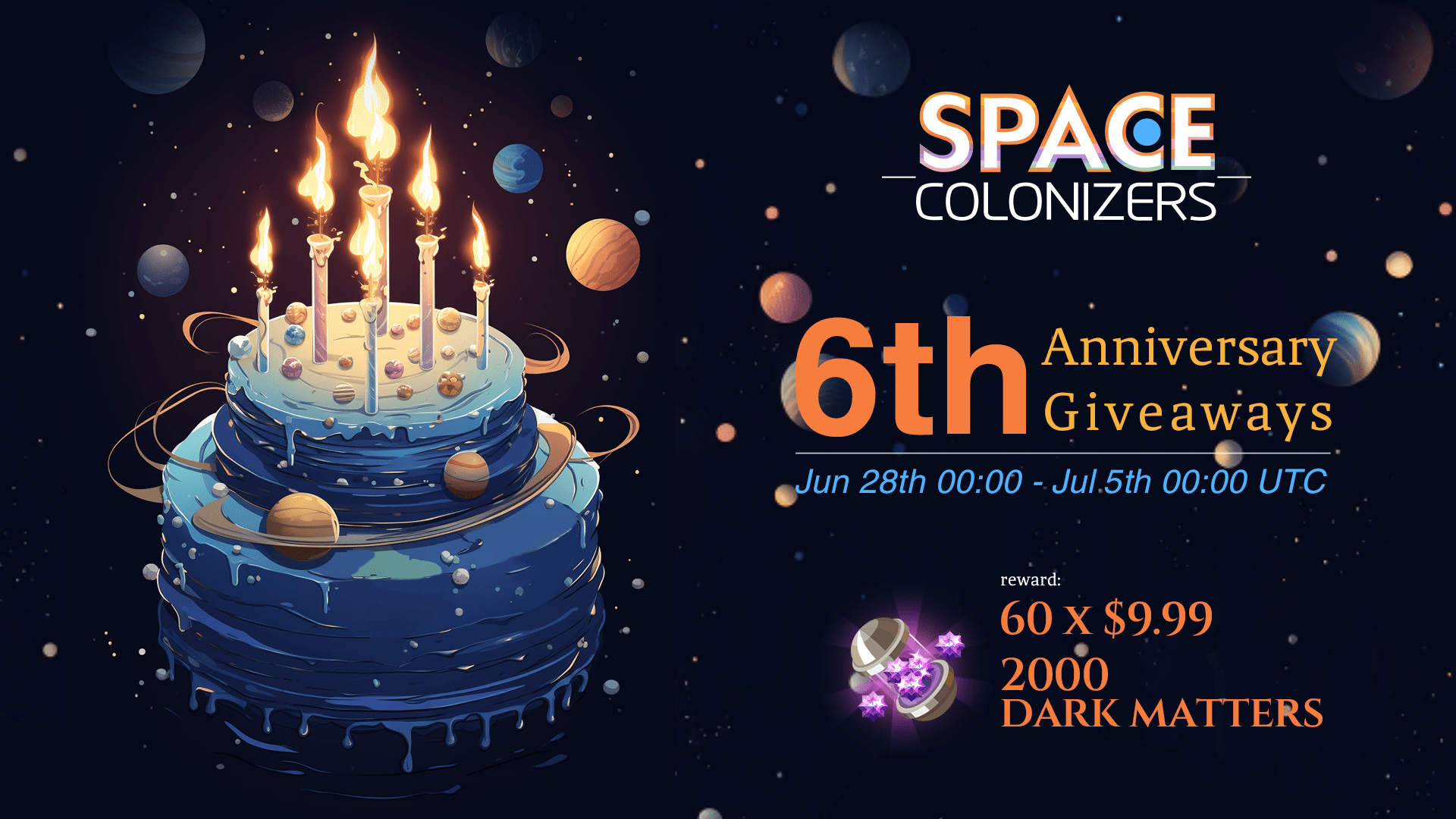Join us in celebrating the 6th Anniversary of Space Colonizers Idle Clicker!